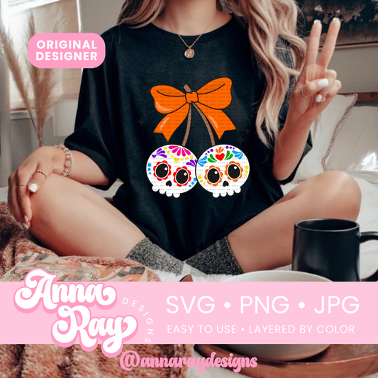 Coquette Cherry Sugar Skulls SVG PNG JPG