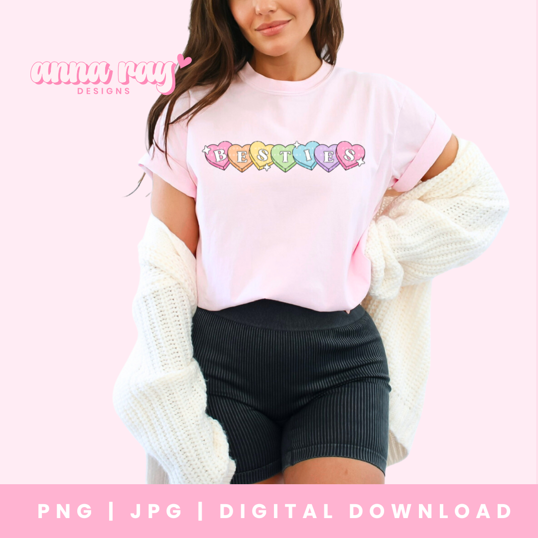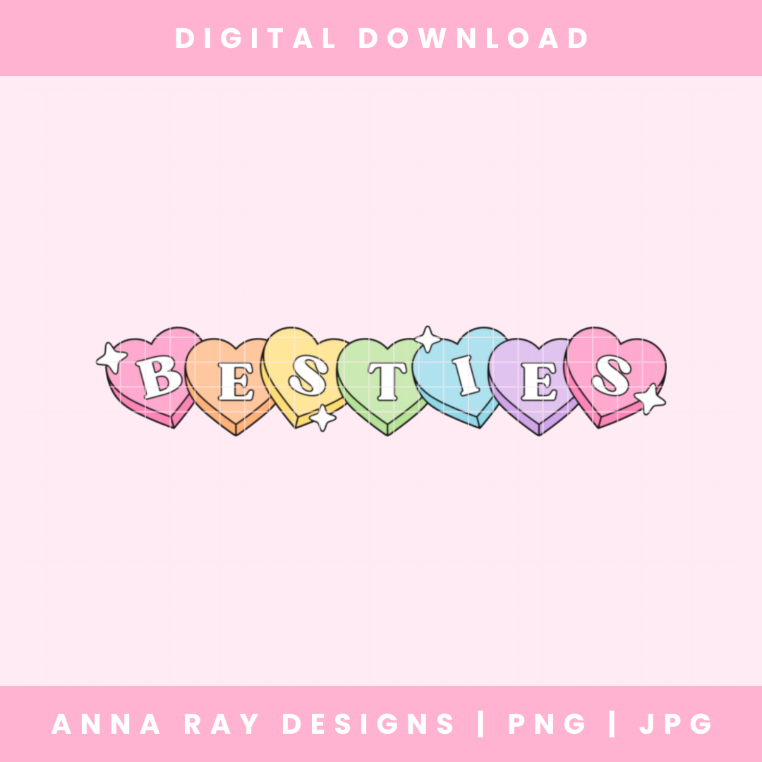 Besties Candy Hearts- PNG, and JPG Digital Files.