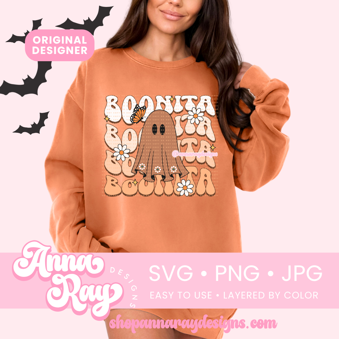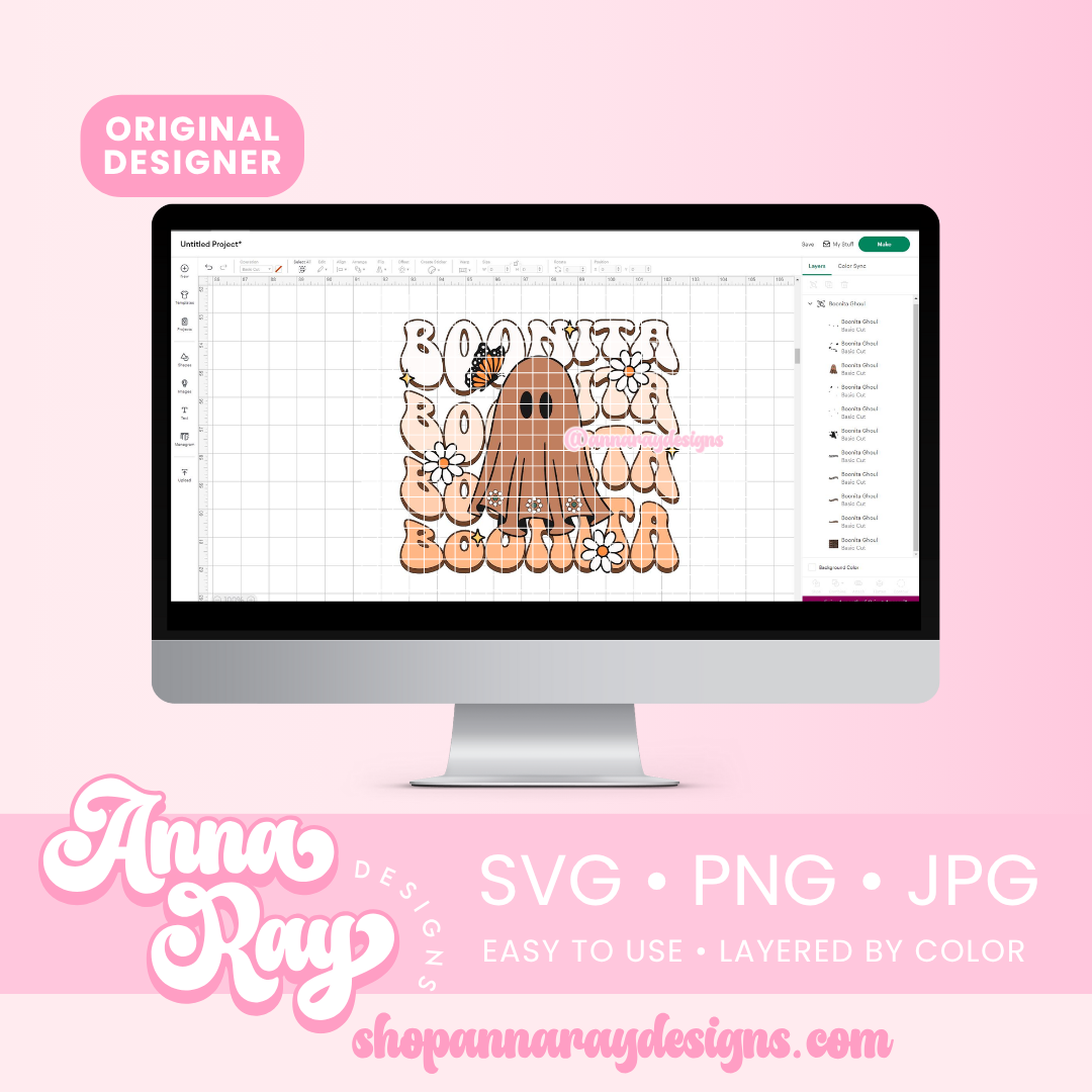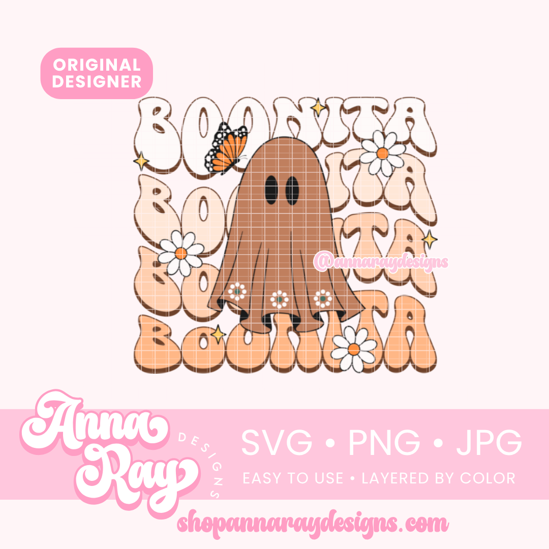 Boonita Ghoul SVG, PNG and JPG Digital Files. This Boonita Ghoul brings ghostly glam to your Halloween creations! Perfect for crafting standout pieces like t-shirts, mugs, stickers, tote bags, and more. All of our files are easy to use, layered by color and compatible with Cricut Design Space and Silhouette Studio.