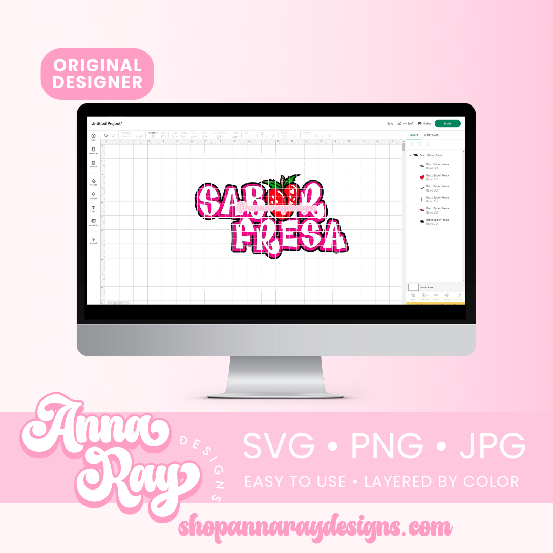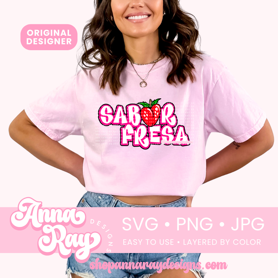 BTZ Sabor Fresa SVG, PNG and JPG Digital Files. This fresa design is perfect for creating items such as shirts, drink ware, stickers, tote bags and more! All of our files are easy to use, layered by color and compatible with Cricut Design Space and Silhouette Studio.