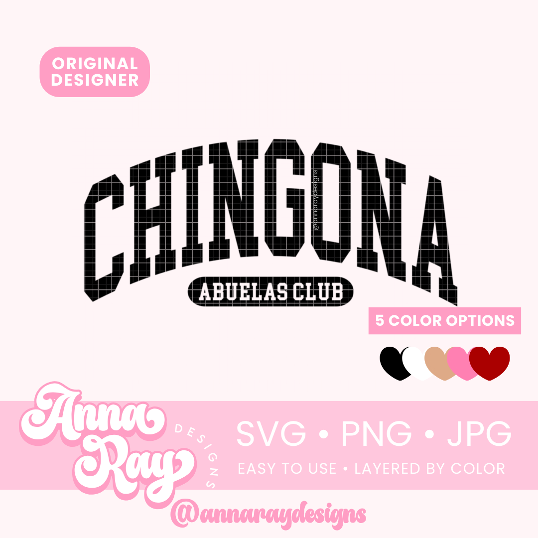 Chingona Abuelas Club SVG, PNG and JPG Digital Files. This Abuela design is perfect for creating items such as shirts, drink ware, stickers, tote bags and more! All of our files are easy to use, layered by color and compatible with Cricut Design Space and Silhouette Studio.