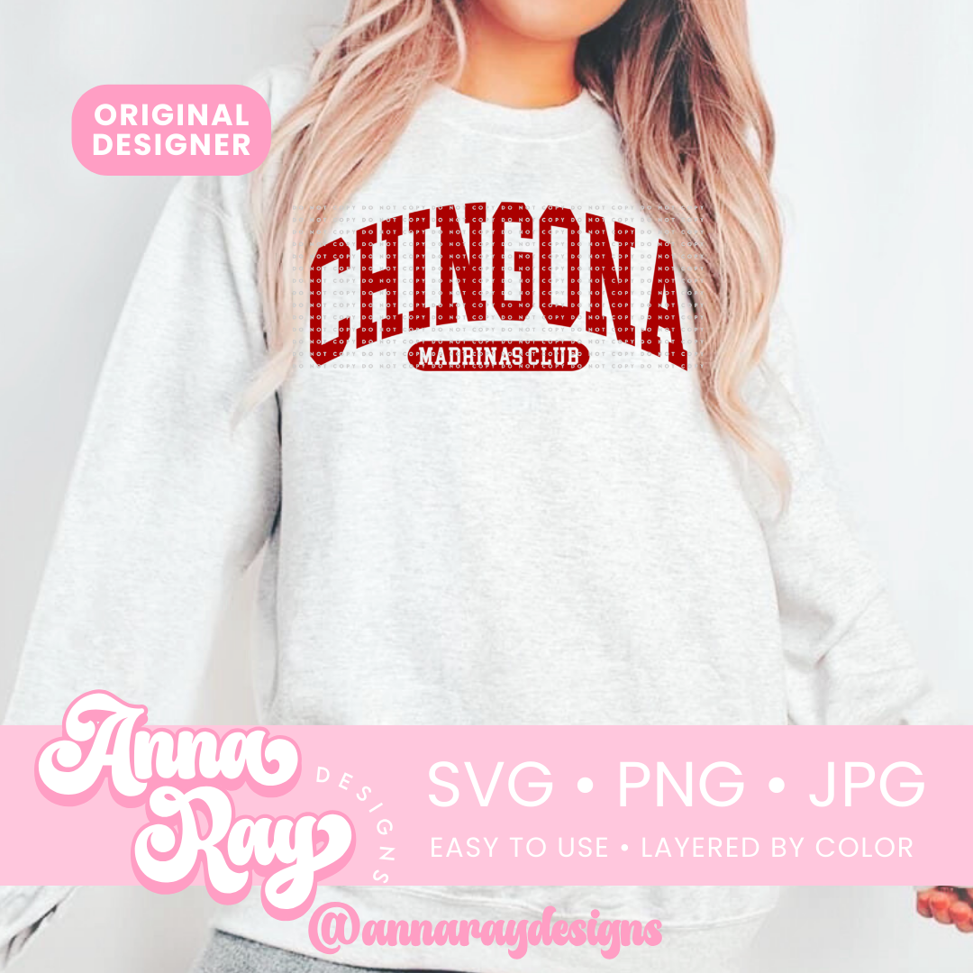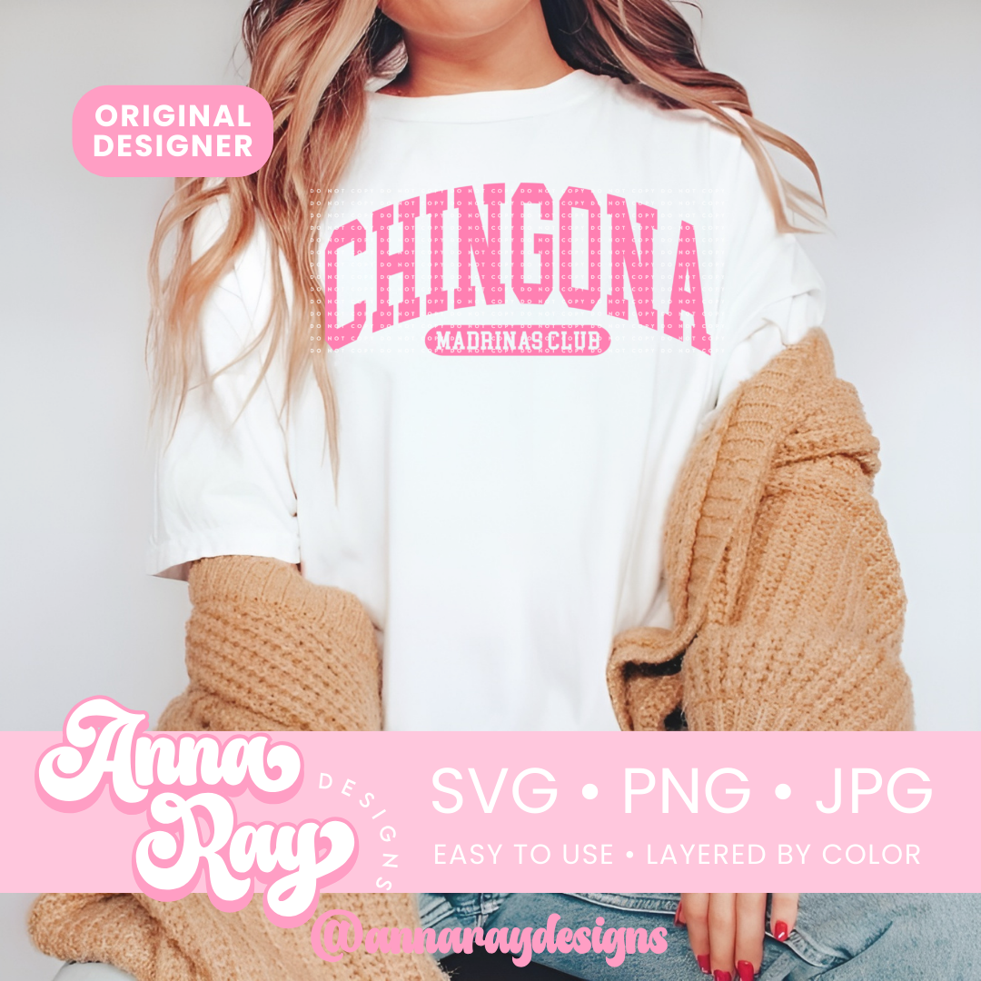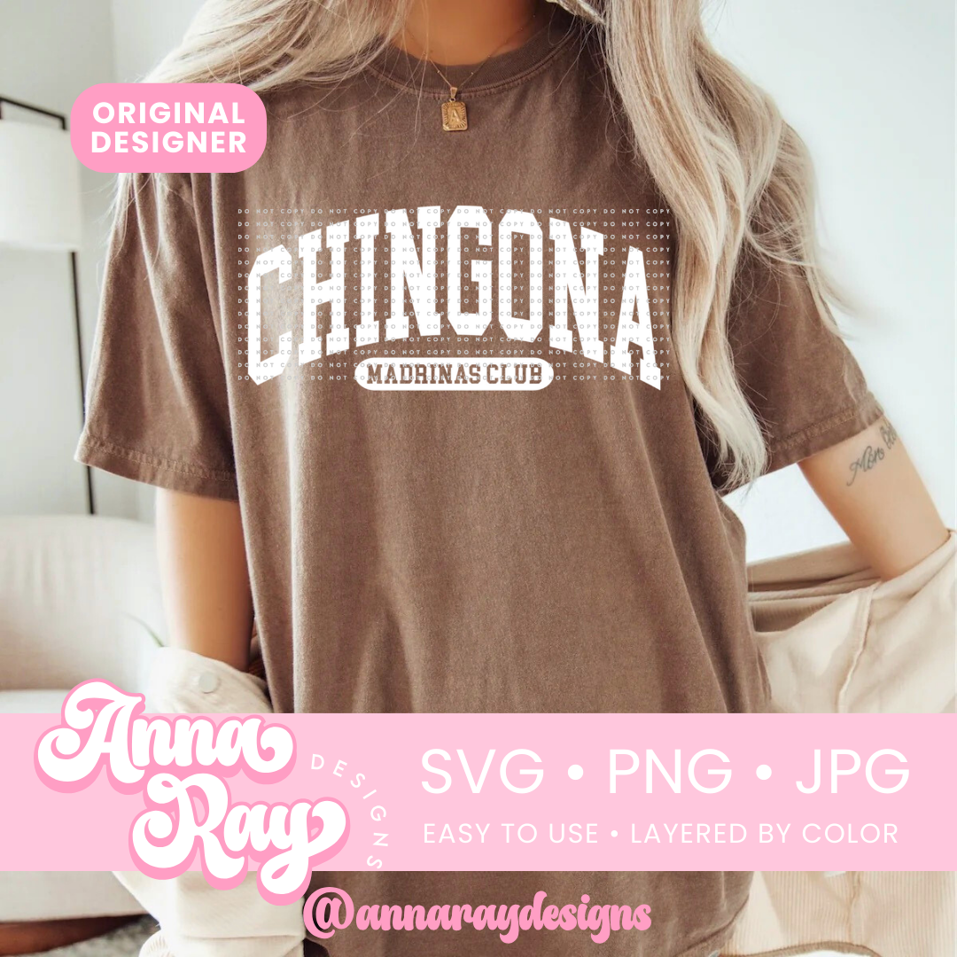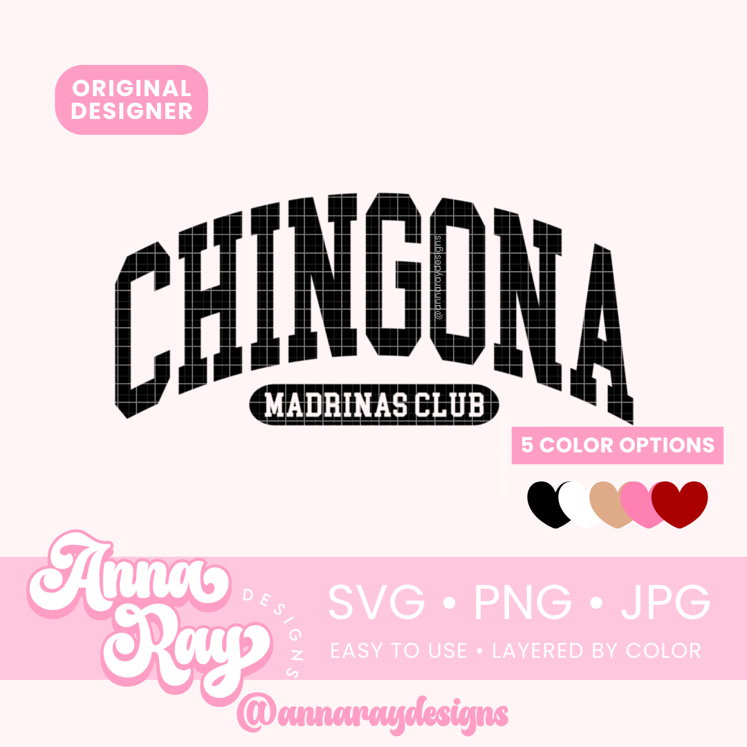 Chingona Madrina Club SVG, PNG and JPG Digital Files. This Madrina design is perfect for creating items such as shirts, drink ware, stickers, tote bags and more! All of our files are easy to use, layered by color and compatible with Cricut Design Space and Silhouette Studio.