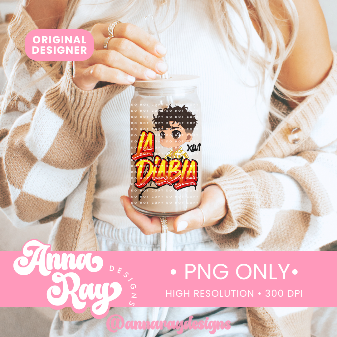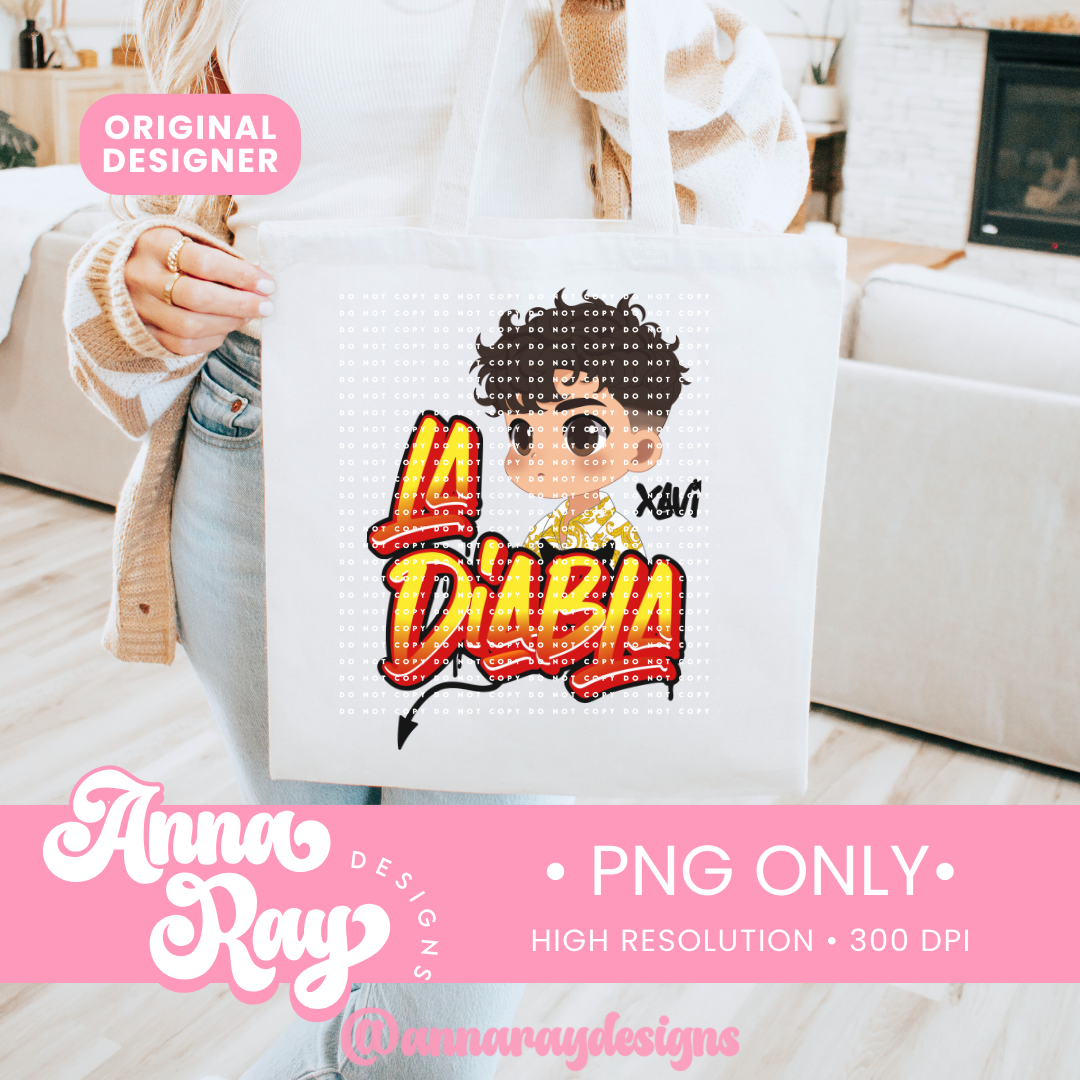 Xavi La Diabla PNG Digital File. This cute Diabla design is perfect for creating Xavi inspired items such as shirts, drink ware, stickers, tote bags and more!
