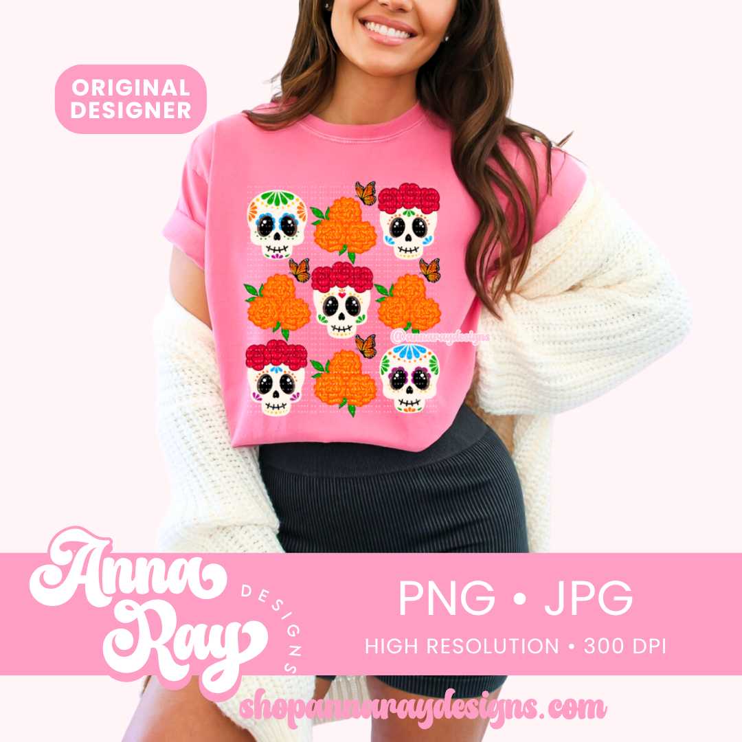 Dia de Muertos PNG and JPG Digital Files. This Dia De Los Muertos design is perfect for creating items such as shirts, drink ware, stickers, tote bags and more! All of our files are easy to use, layered by color and compatible with Cricut Design Space and Silhouette Studio.