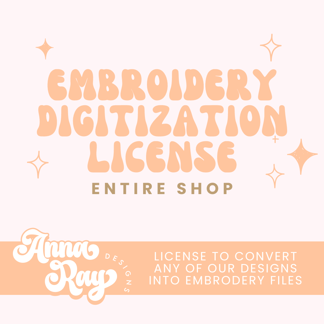 ✦ ANNA RAY DESIGNS EMBROIDERY DIGITIZATION COMMERCIAL LICENSE FOR ENTIRE SHOP ✦