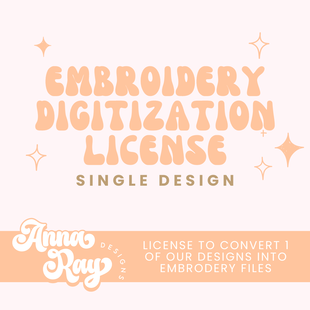 ✦ ANNA RAY DESIGNS EMBROIDERY DIGITIZATION COMMERCIAL LICENSE FOR (1) SINGLE DESIGN ✦