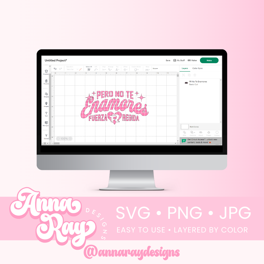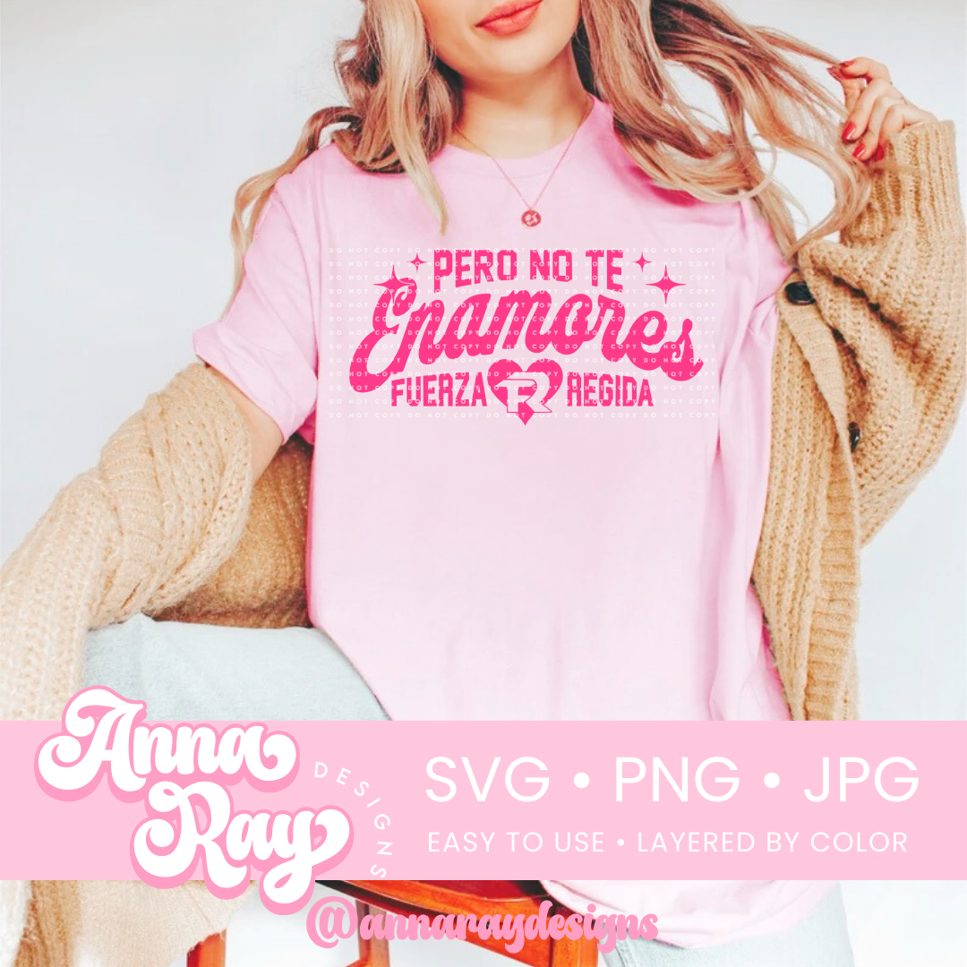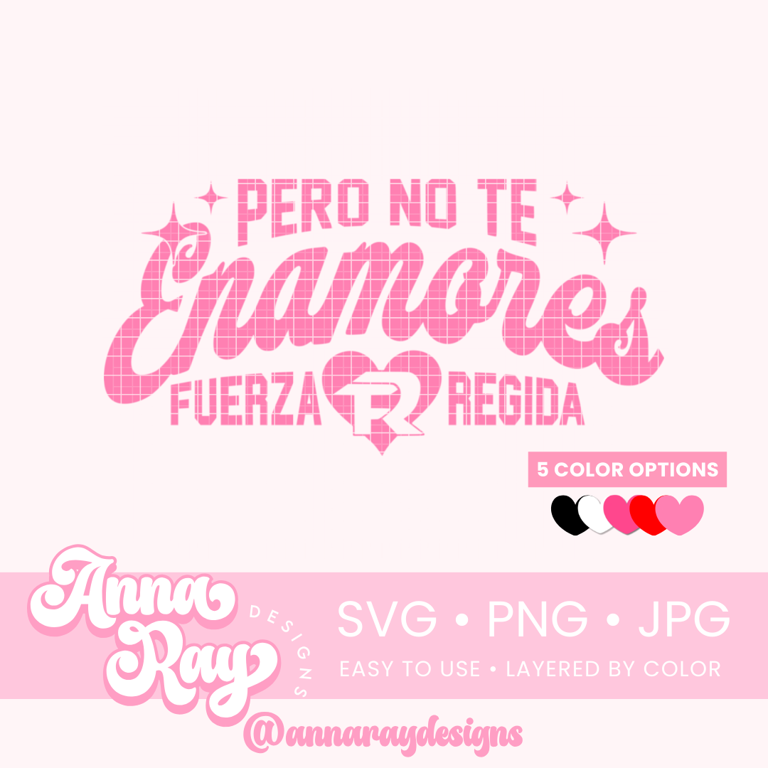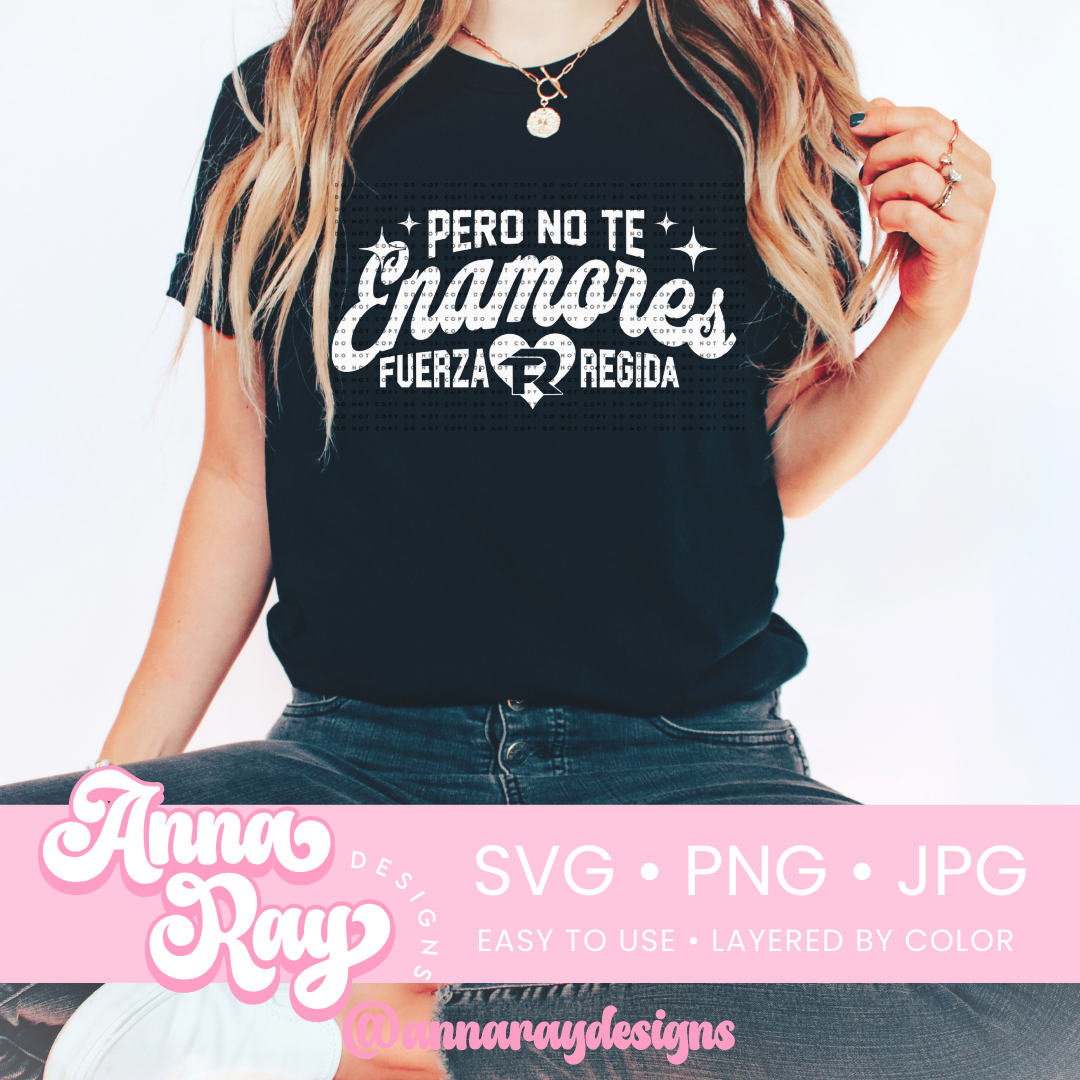FR No Te Enamores SVG, PNG and JPG Digital Files. This design is perfect for creating gifts such as shirts, drink ware, stickers, tote bags and more! All of our files are easy to use, layered by color and compatible with Cricut Design Space and Silhouette Studio.