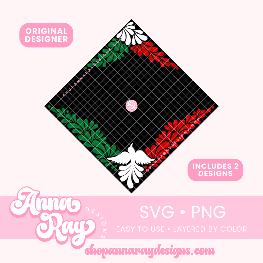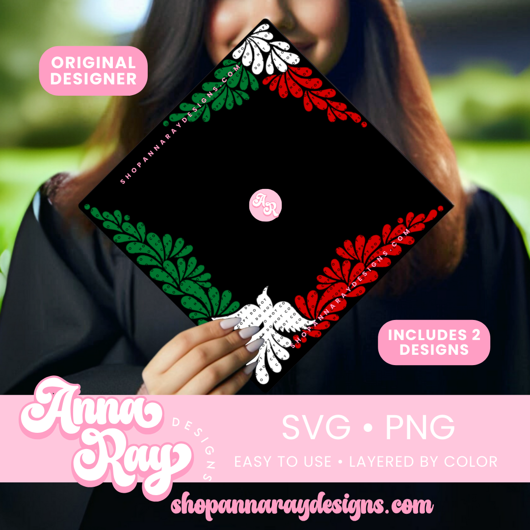 Mexican Talavera Graduation Cap Border digital download. This digital graduation cap design includes 1 SVG and 2 PNG files, perfect for crafters who are looking to give their grad caps a 3D layered effect or for any graduate who is looking to decorate their own cap.