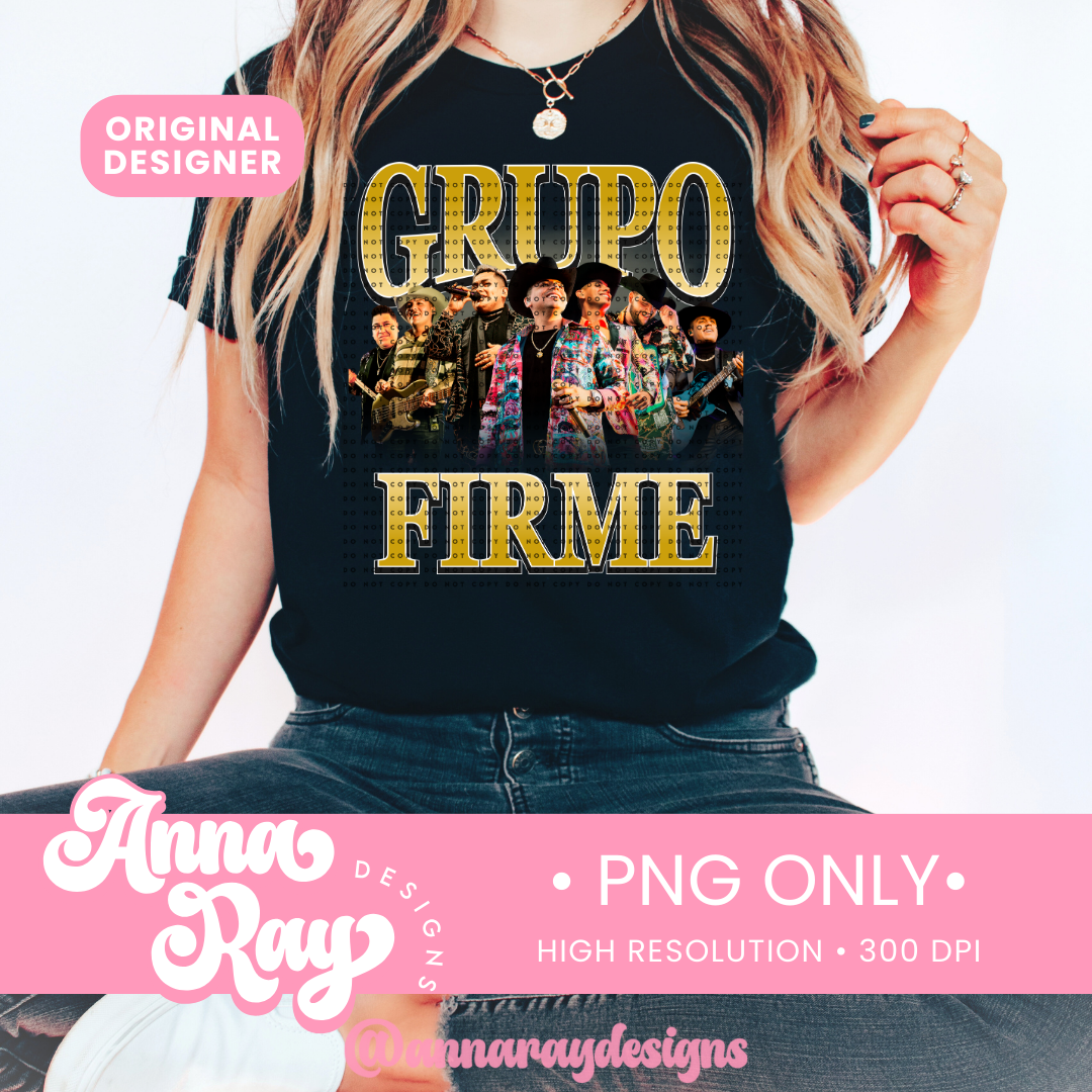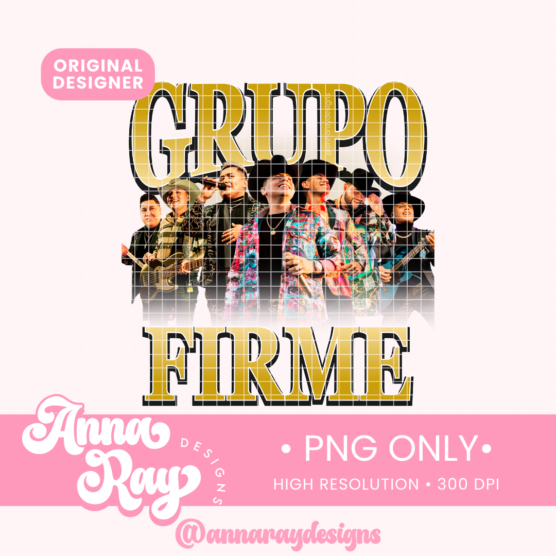 Gold Grupo Firme PNG Digital File. This design is perfect for creating items such as shirts, hoodies, stickers, tote bags and more! All of our files are easy to use and compatible with Cricut Design Space and Silhouette Studio.