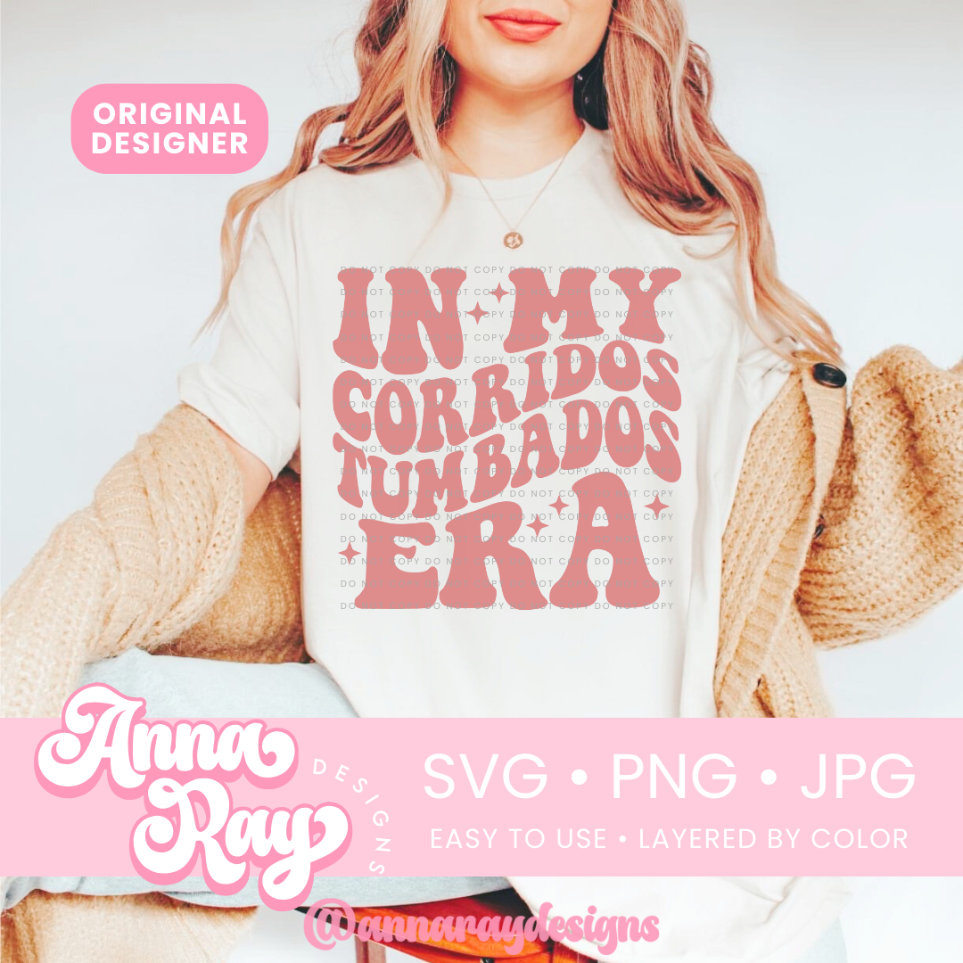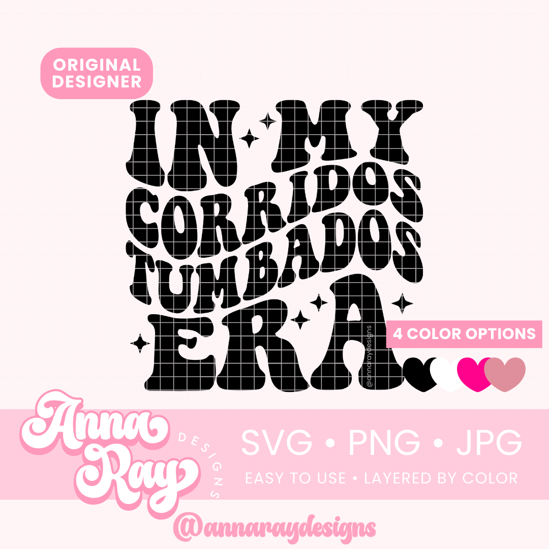 In My Corridos Tumbados Era SVG, PNG and JPG Digital Files. This design is perfect for creating items such as shirts, drink ware, stickers, tote bags and more! All of our files are easy to use, layered by color and compatible with Cricut Design Space and Silhouette Studio.