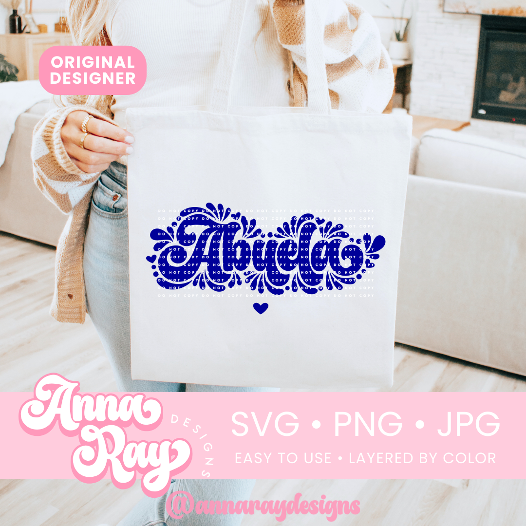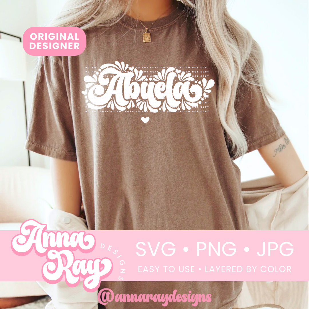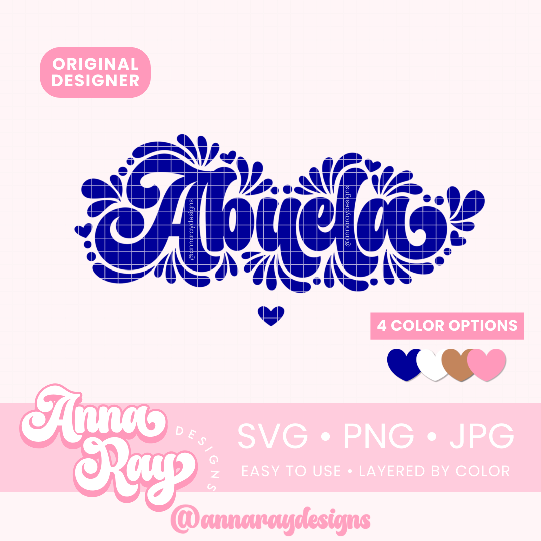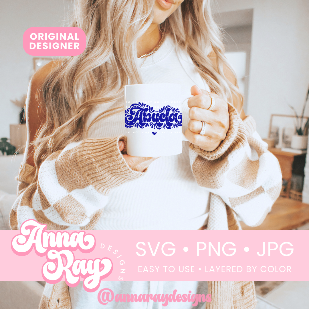 Mexican Talavera Abuela SVG, PNG and JPG Digital Files. This Abuela design is perfect for creating items such as shirts, drink ware, stickers, tote bags and more! All of our files are easy to use, layered by color and compatible with Cricut Design Space and Silhouette Studio.