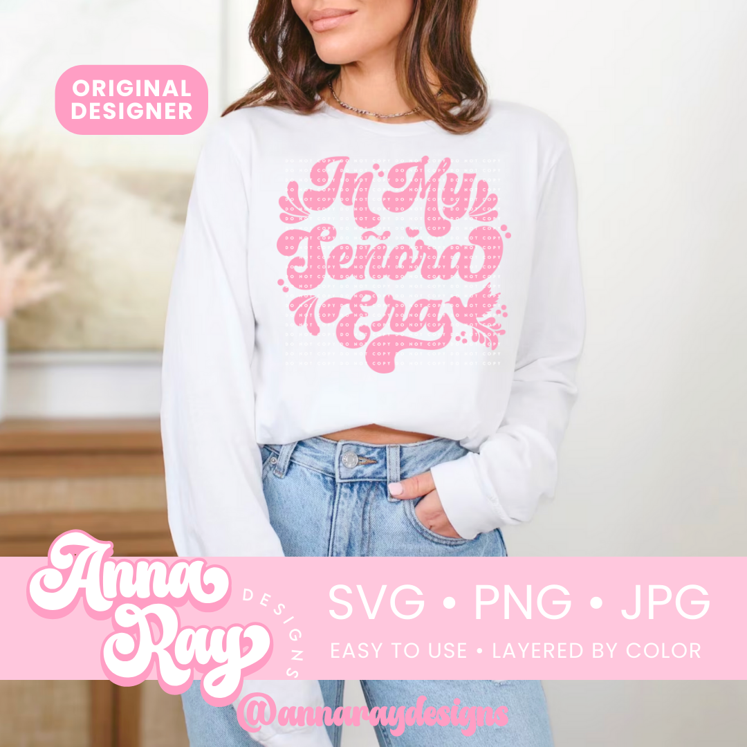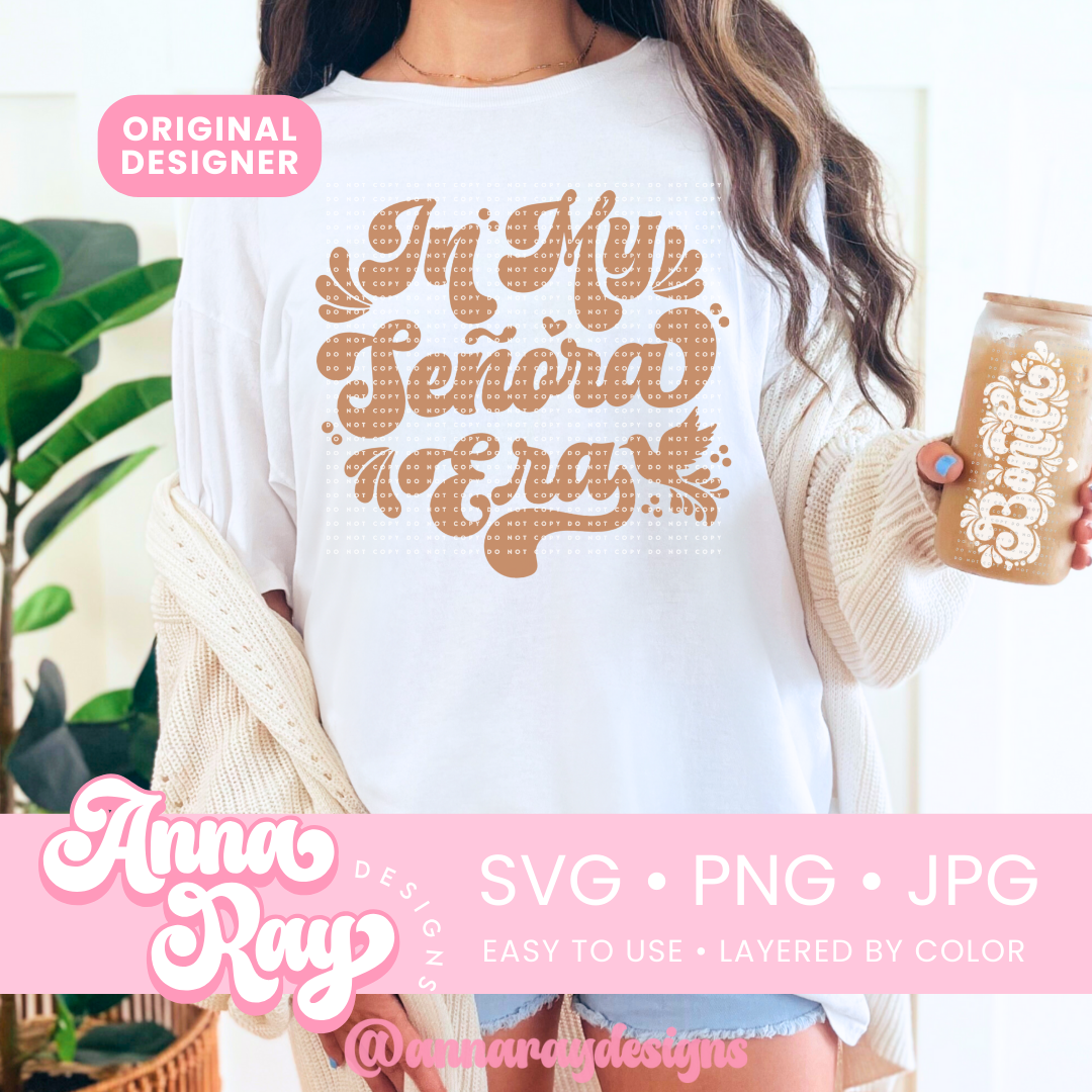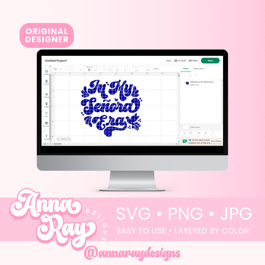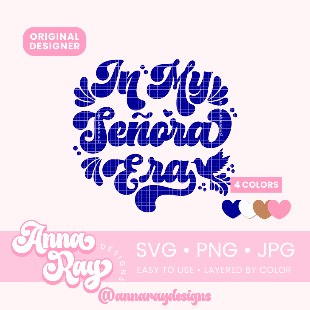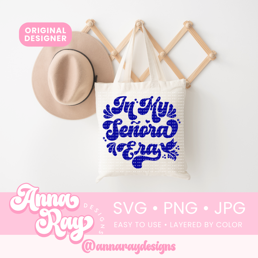 Talavera In My Señora Era SVG, PNG and JPG Digital Files. This Talavera design is perfect for creating items such as shirts, drink ware, stickers, tote bags and more! All of our files are easy to use, layered by color and compatible with Cricut Design Space and Silhouette Studio.
